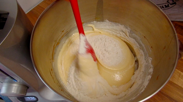 Fold in the flour, careful not to knock any air out.