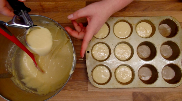 Spoon the mix into your lined muffin tin. You can fill it up as the recipe doesn’t rise too much in the oven.