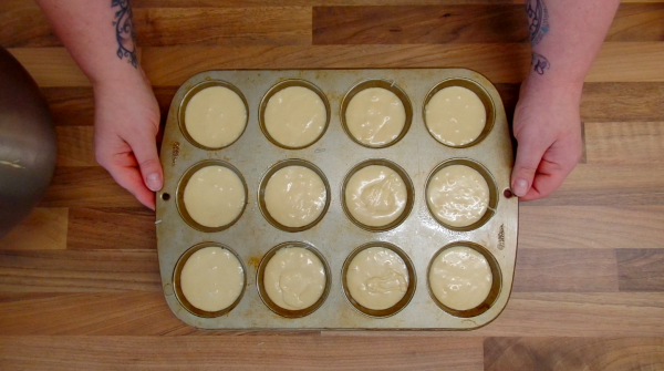 This recipe makes 15 cups or, as I’ve done 12 with the rest in a greased loaf tin for munching on.