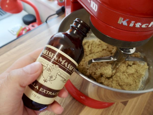 I’m using the Sainsbury’s dark chocolate chips found in the baking aisle which are vegan (and cheaper than the specific ‘free from’ chocolate chips found in the free from aisle) and the Sainsbury’s basics dark chocolate for the squares on top, which is also ‘accidentally’ vegan. Sometimes it works out cheaper to have a look at the labels rather than heading straight for the specialist aisle.